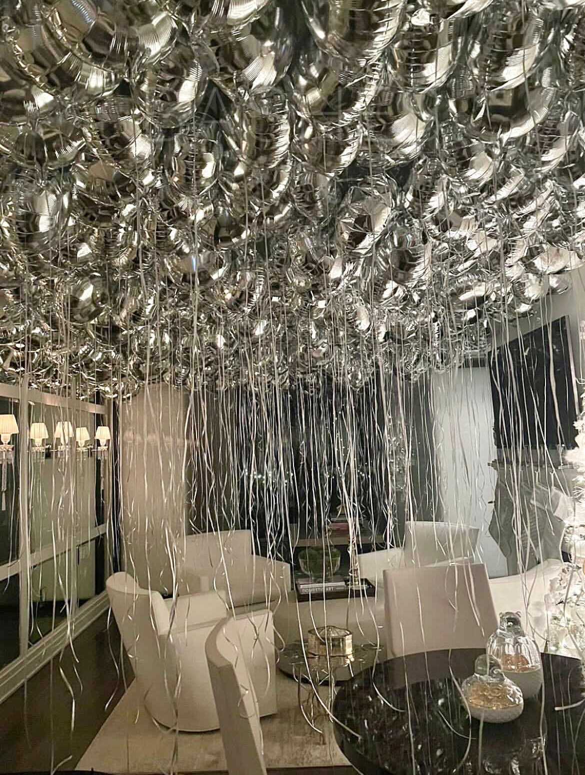 Example Photo Has 800 Silver Foil Round Balloons (No Weights by Request)